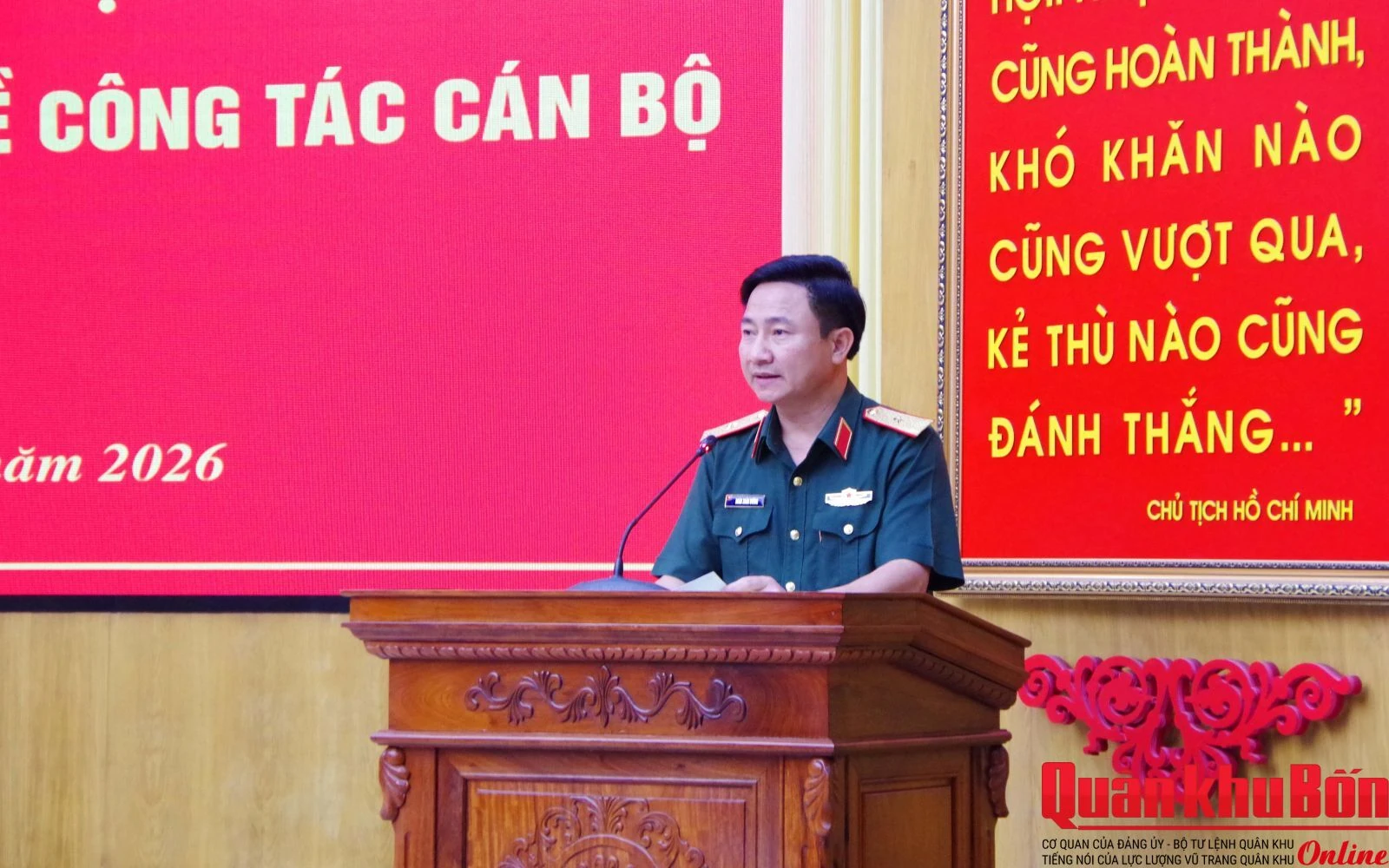 Hội nghị đã nghe công bố các quyết định của Bộ trưởng Bộ Quốc phòng về việc điều động, bổ nhiệm cán bộ. Theo quyết định của Bộ trưởng Bộ Quốc phòng, Thiếu tướng Vũ Xuân Hùng, cán bộ biệt phái, nguyên Ủy viên - đại biểu Quốc hội hoạt động chuyên trách tại Ủy ban Quốc phòng, An ninh và Đối ngoại của Quốc hội khóa XV (nguyên Phó Tham mưu trưởng Quân khu 4) nghỉ công tác từ ngày 15/4/2026 về Quân khu 4 thực hiện chế độ, chính sách.