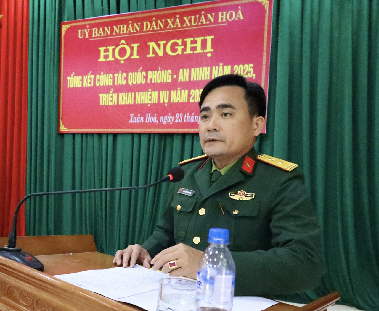 Phát biểu tại Hội nghị, đồng chí Trung tá Nguyễn Văn Hùng, Chỉ huy trưởng Ban Chỉ huy Phòng thủ Khu vực 3 – Ngọc Lặc ghi nhận, đánh giá cao những kết quả xã Xuân Hoà đạt được trong công tác QP–AN năm 2025; đồng thời định hướng một số nhiệm vụ trọng tâm nhằm tiếp tục củng cố thế trận quốc phòng toàn dân gắn với thế trận an ninh nhân dân trên địa bàn.