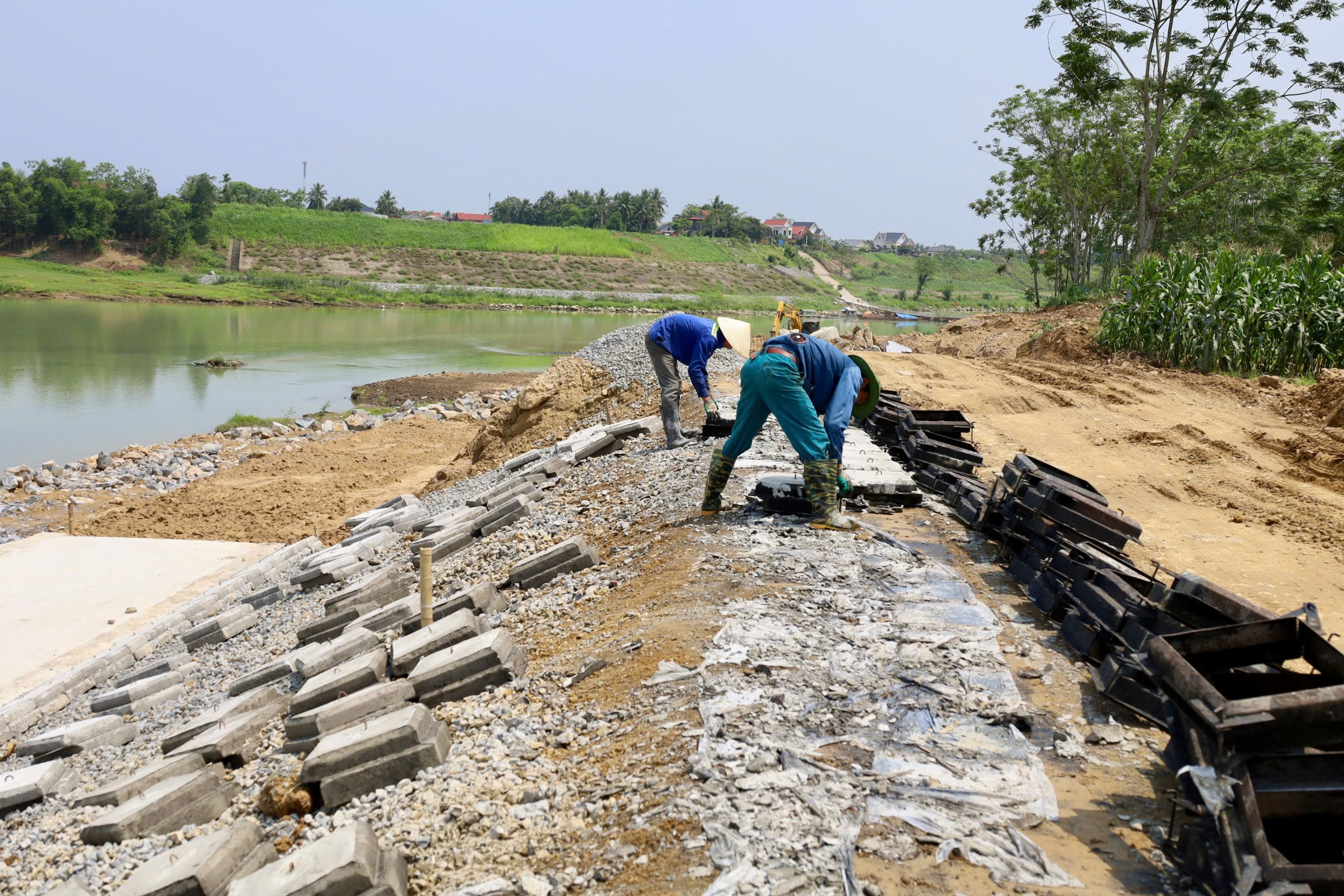 Xã Xuân Hòa chỉ đạo đẩy nhanh tiến độ thực hiện dự án kè Hải Mậu - Hải Thành phục vụ công tác phòng chống thiên tai.