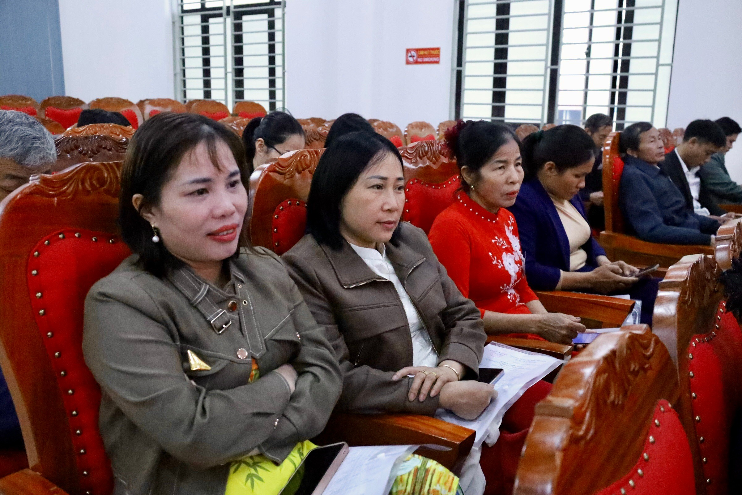Tham dự có đồng chí Nguyễn Thị Bích Phương, Phó Bí thư Thường trực Đảng ủy; đồng chí Trịnh Ngọc Giang, Phó Bí thư Đảng ủy, Chủ tịch UBND xã; các đồng chí Ủy viên Ban Thường vụ, Ban Chấp hành Đảng bộ xã; đại biểu HĐND xã; trưởng các ban, ngành, đoàn thể; Bí thư chi bộ, Trưởng thôn và Trưởng ban công tác Mặt trận thôn.