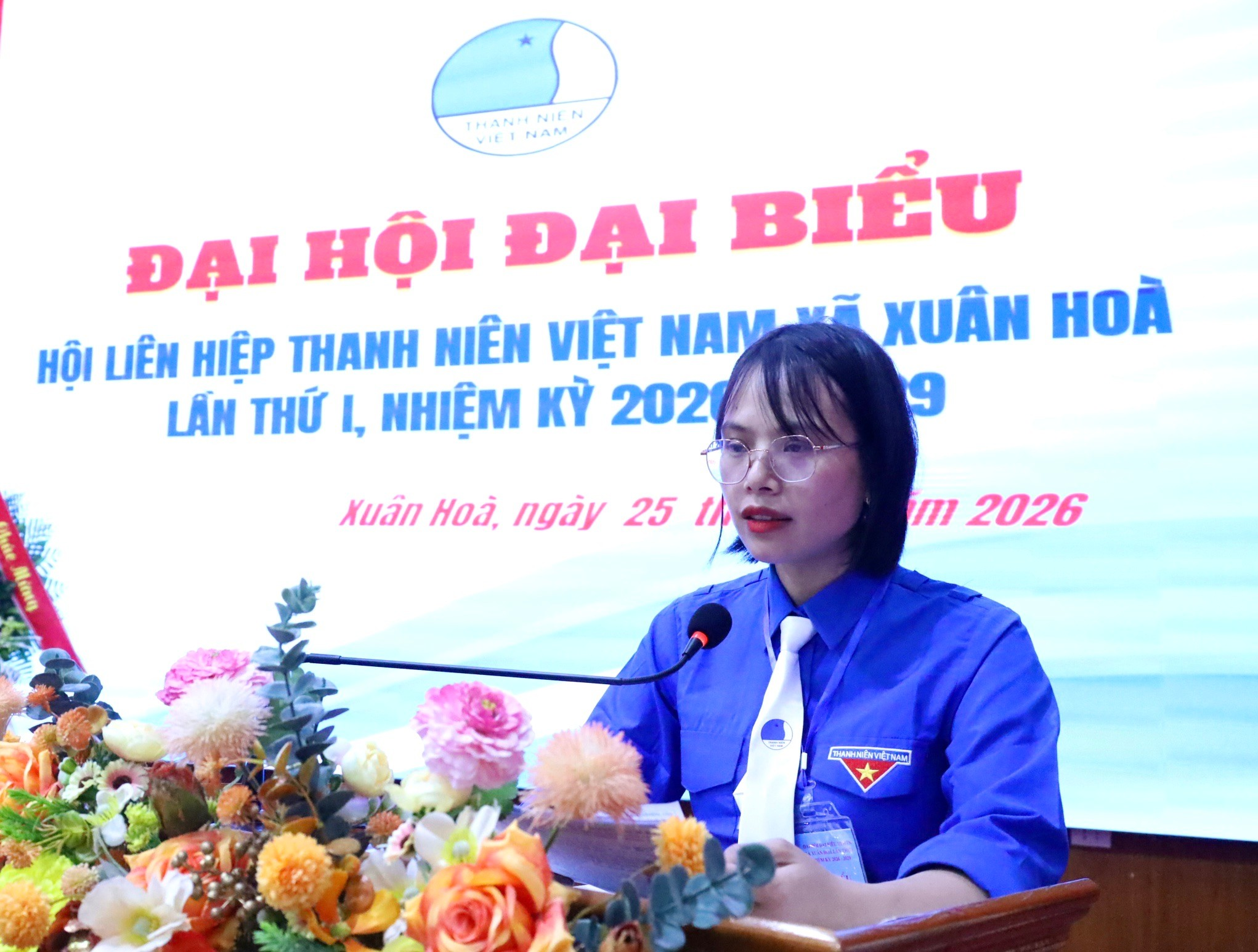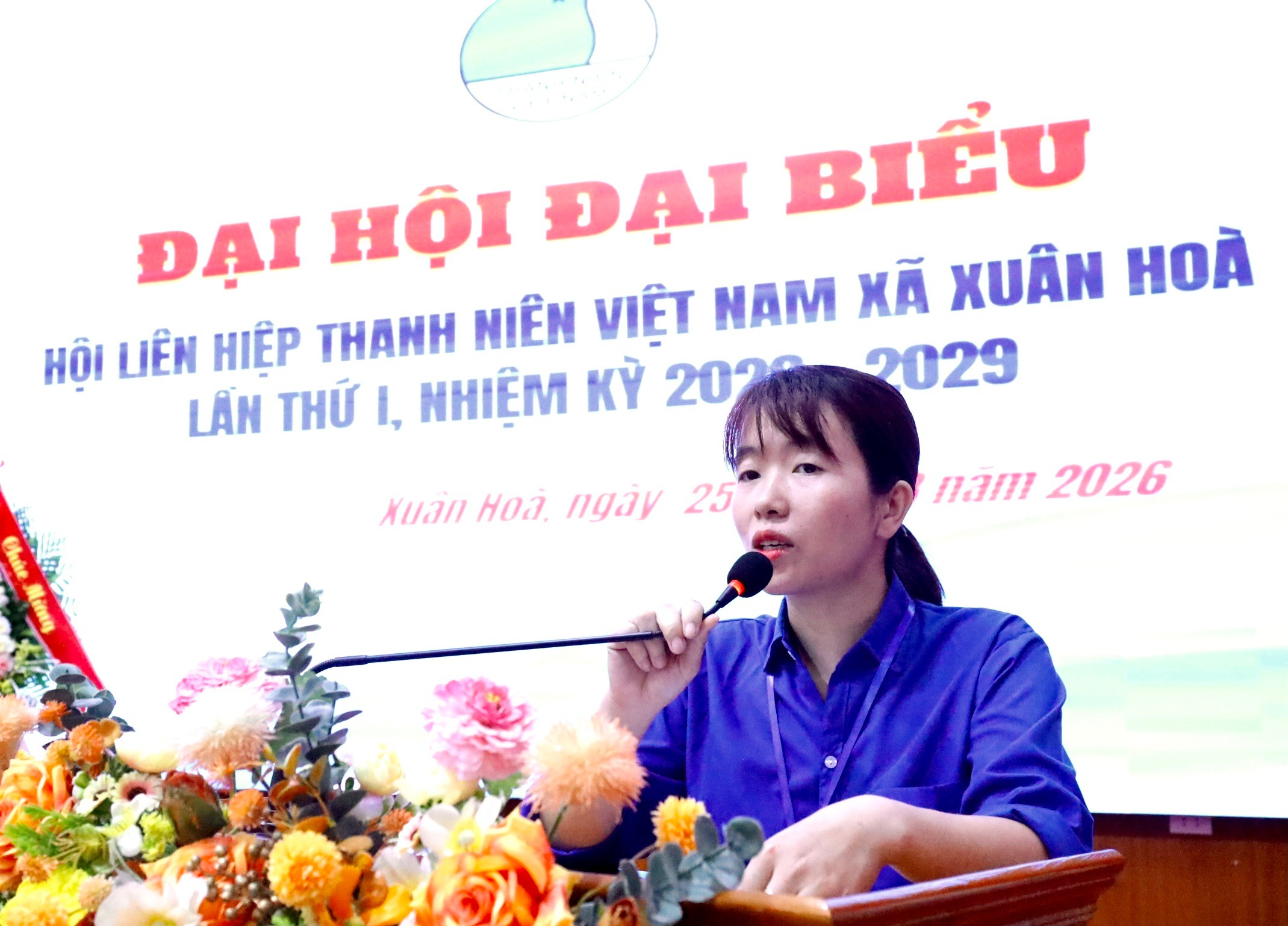 Đồng chí Nguyễn Thị Hoà, Phó Bí thư Đoàn TNCS HCM, Phó Chủ tịch Hội LHTN xã Xuân Hoà Trình bày báo cáo tổng kết công tác Hội và phong trào TN nhiệm kỳ qua; mục tiêu, phương hướng, nhiệm vụ nhiệm kỳ tới