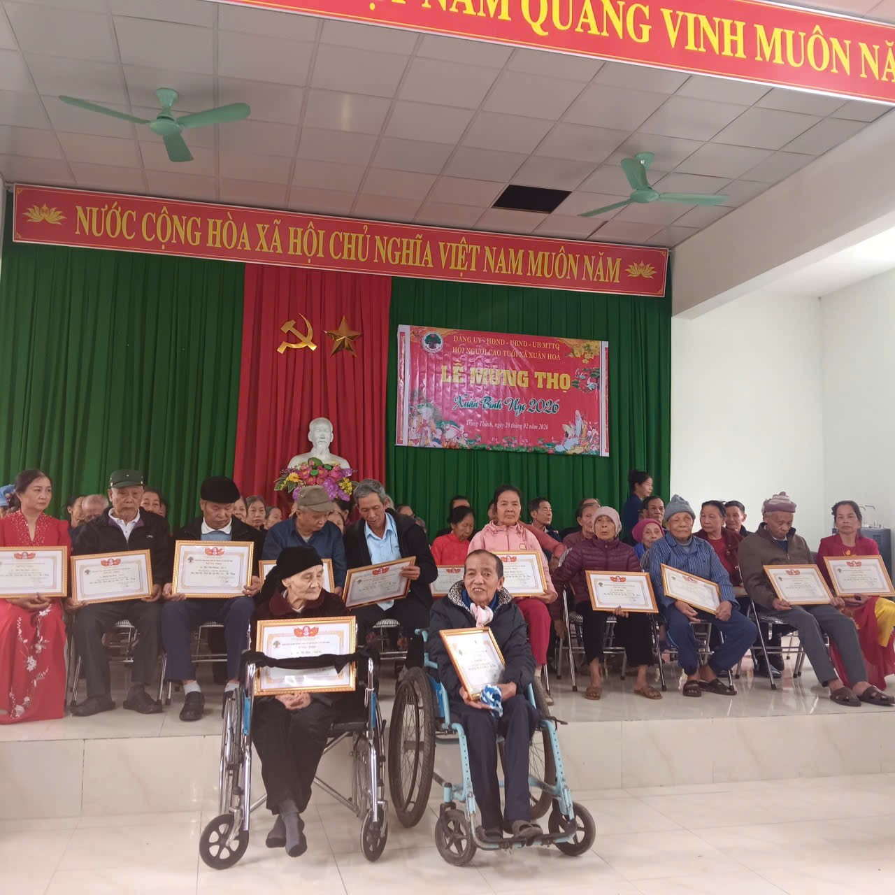 Trong không khí vui tươi, phấn khởi của những ngày đầu Xuân mới, ngày 20 tháng 02 năm 2026 (tức ngày mùng 4 Tết Nguyên đán Bính Ngọ), các thôn trên địa bàn xã Xuân Hòa đã long trọng tổ chức Lễ mừng thọ, chúc thọ cho các cụ cao tuổi trên địa bàn.