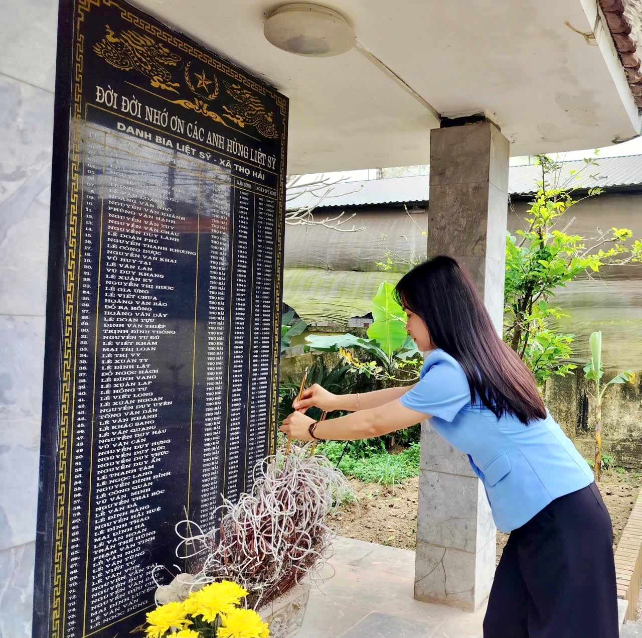 Đoàn do đồng chí Nguyễn Thị Bích Phương, Phó Bí thư Thường trực Đảng ủy làm trưởng đoàn đã đến dâng hoa, dâng hương tại Đài tưởng niệm liệt sĩ thôn Tân Thành