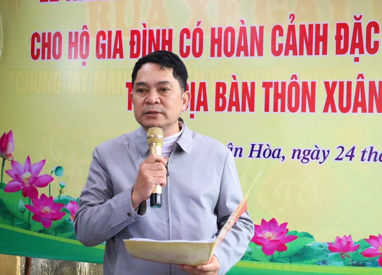 Phát biểu tại chương trình, đồng chí Lê Văn Tập, Uỷ viên ban Thường vụ Đảng uỷ, Chủ tịch Ủy ban MTTQ xã Xuân Hoà đánh giá cao sự chung tay của các tổ chức, đoàn thể, các nhà hảo tâm và nhân dân trong việc đóng góp vào Quỹ “Vì người nghèo”, tạo nguồn lực hỗ trợ thiết thực cho các hộ gia đình gặp khó khăn về nhà ở. Đồng chí khẳng định: Mặt trận Tổ quốc xã sẽ tiếp tục phát huy vai trò nòng cốt trong công tác vận động, tập hợp sức mạnh khối đại đoàn kết toàn dân; đồng thời phối hợp chặt chẽ với chính quyền và các đoàn thể để kịp thời nắm bắt, hỗ trợ những trường hợp khó khăn, bảo đảm mọi người dân đều được quan tâm, không ai bị bỏ lại phía sau.