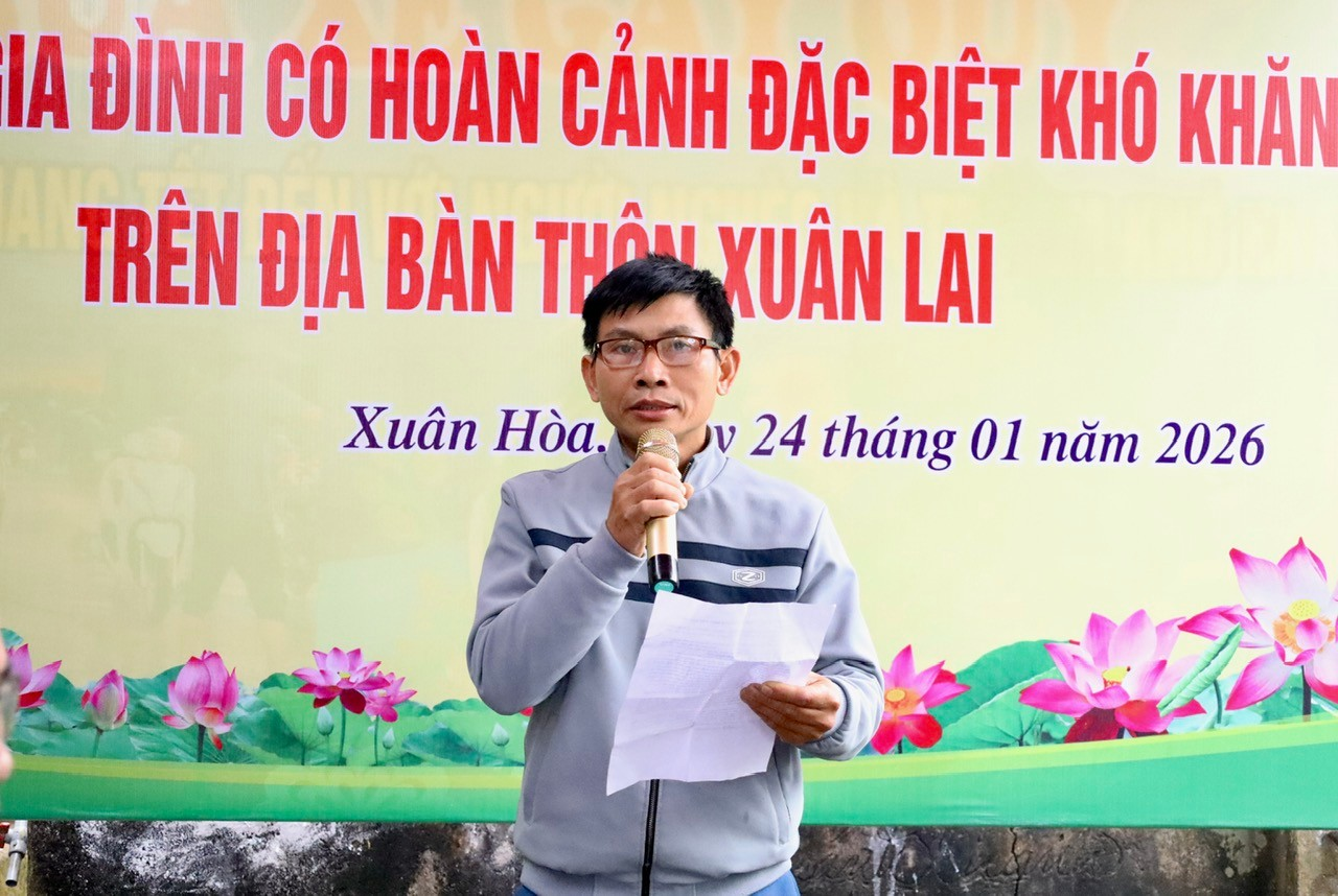 Phát biểu tại buổi trao hỗ trợ, đồng chí Nguyễn Văn Thuỷ, Phó Bí thư Chi bộ, Trưởng thôn Xuân Lai nhấn mạnh: việc quan tâm, hỗ trợ các hộ gia đình có hoàn cảnh khó khăn về nhà ở không chỉ mang ý nghĩa vật chất mà còn là nguồn động viên tinh thần to lớn, thể hiện tinh thần đoàn kết, “tương thân tương ái” của cộng đồng dân cư trong thôn. Đồng thời khẳng định, cấp uỷ, chính quyền và nhân dân thôn Xuân Lai sẽ tiếp tục đồng hành, giúp đỡ các gia đình trong thời gian tới.