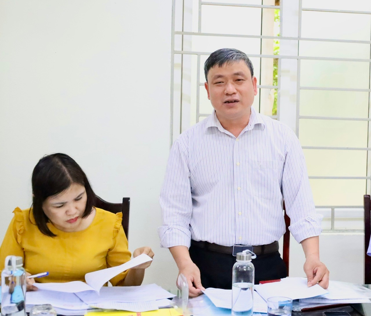 Đồng chí Nguyễn Thị Bích Phương, Phó Bí thư Thường trực Đảng uỷ xã, chủ trì hội nghị