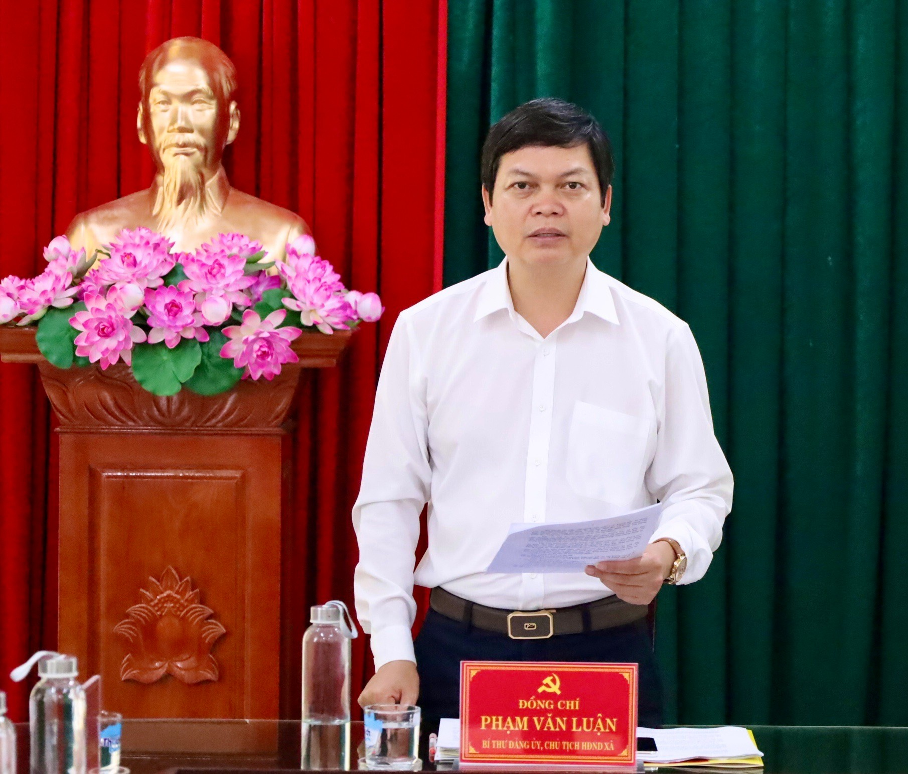 Đồng chí Phạm Văn Luận, Bí thư Đảng ủy, Chủ tịch HĐND xã chủ trì Hội nghị.